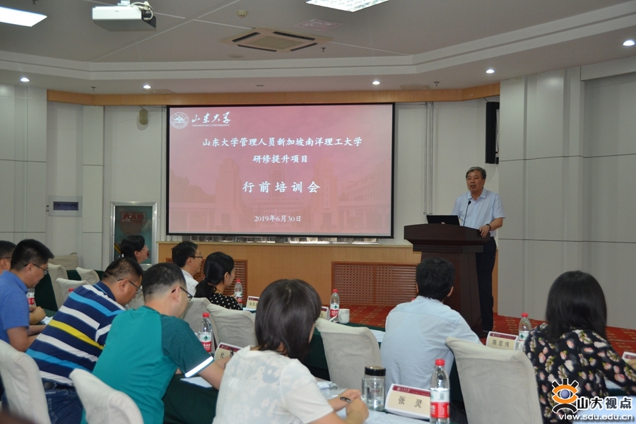 [本站讯]6月30日,山东大学管理人员南洋理工大学研修提升项目行前培训会议在中心校区举行,国家留学基金委员会合作项目部副主任杨光,校党委副书记仝兴华,党委常委、组织部部长陈宏伟出席会议并讲话。
