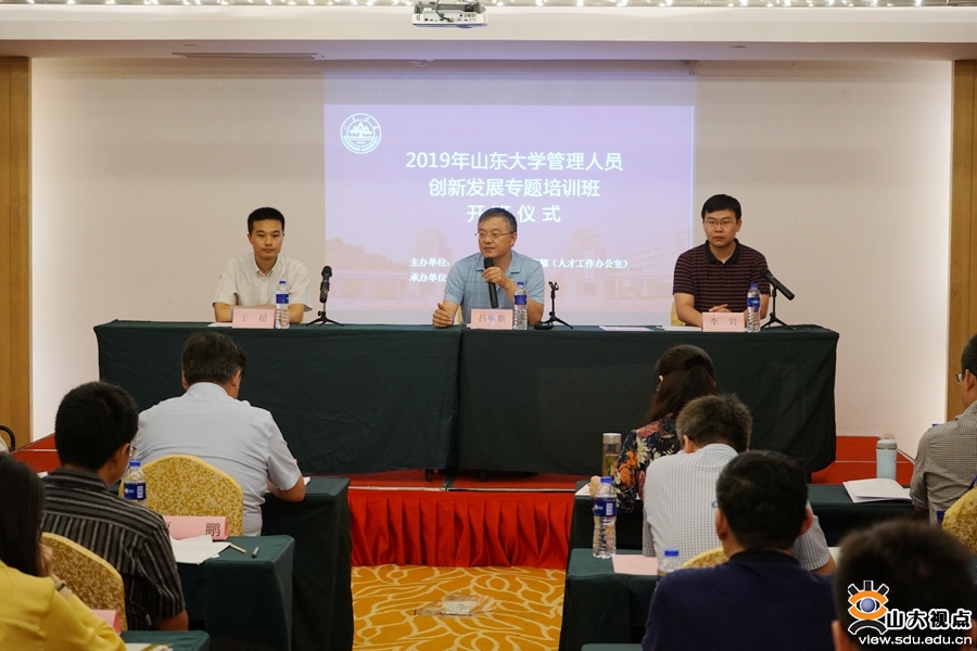 [本站讯]7月8日,山东大学管理人员创新发展专题培训班在苏州举行开班仪式。山东大学苏州研究院常务副院长吕明新,人事部副部长、人才办公室副主任李岩出席会议并讲话。会议由组织部副处级组织员于超主持。