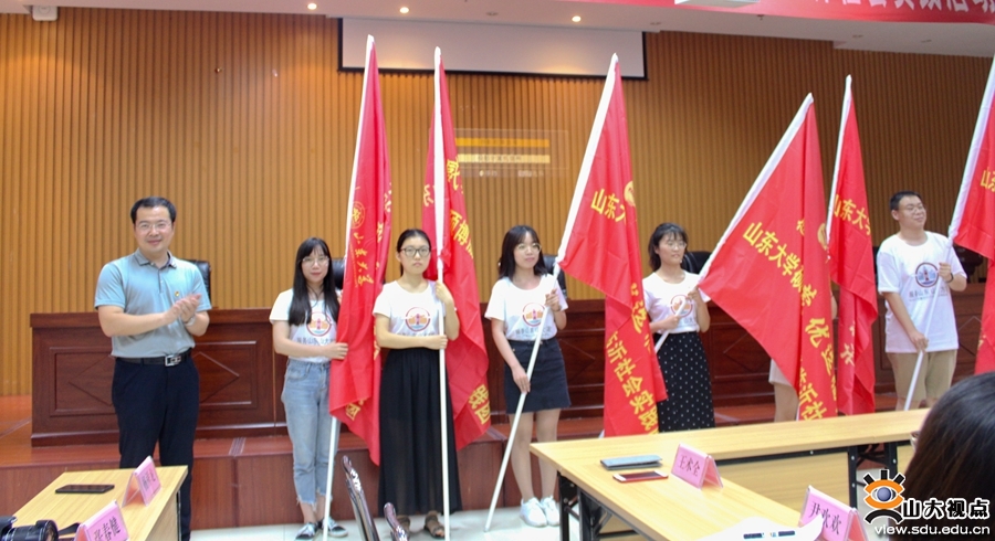 [本站讯]7月8日,“服务山东·山大方案”山东大学硕博服务团走进临沂社会实践活动启动仪式在临沂市青少年宫举行。共青团临沂市委书记万明国出席仪式并为“服务山东·山大方案”山东大学硕博服务团授旗。共青团临沂市委副书记马允超、“服务山东·山大方案”山东大学硕博服务团队员参加活动。