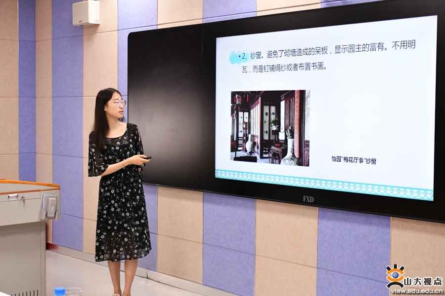 活动中,9组学生按抽签顺序依次展示精心准备的传统文化课题。汇报主题涵盖苏绣、苏州园林、评弹、苏扇以及汉服等方面。同学们不拘泥于普通的汇报形式,积极创新,讲演苏州评弹的四位女生现场献唱了一段“秦淮景”;对比江南与津京冀曲艺文化的同学搭档说了一段相声;分享苏州古城门故事的同学朗诵了自己的原创短诗。刘玉平教授就汇报情况对每队依次进行点评,并对同学们的努力给予了充分肯定。经评审,“南北戏曲对比”“苏州评弹”和“苏园”三组队伍分别获得了课题汇报的第一、二、三名。
