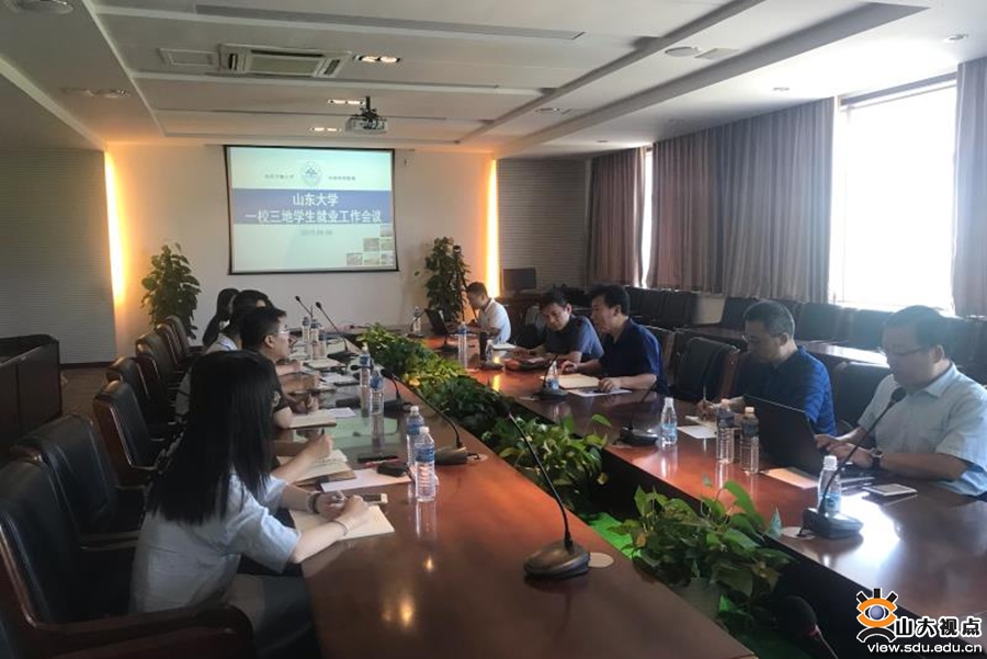 [本站讯]8月6日下午,山东大学一校三地学生就业工作会议在威海校区举行。学生就业创业指导中心主任肖祥主持会议,威海校区学生工作处处长王景瑞、青岛校区学生工作部部长宋作标,一校三地学生就业工作人员参加会议。