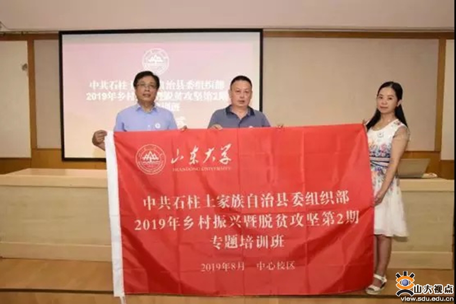 [本站讯]近日,中共石柱土家族自治县委组织部2019年乡村振兴暨脱贫攻坚第二期专题培训班在山东大学中心校区开班,来自石柱土家族自治县的县领导、县乡镇(街道)党政主要领导和相关县级部门主要负责人参加此次培训。中共石柱土家族自治县委组织部副部长、老干部局局长向学虎,山东大学电气工程学院副处级组织员、办公室主任薛辉出席开班仪式。