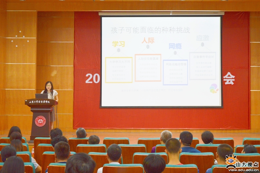 [本站讯]8月31日,随着新生报到的进行,2019级新生家长心理健康宣讲会在济南各校区陆续进行,宣讲会由心理中心教师主讲,截止9月1日,共在27个学院举行28场,参与人数达4300。