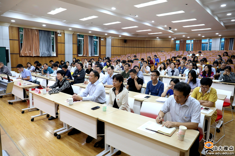 山东大学“不忘初心、牢记使命”主题教育第五指导组全体成员,附中领导班子成员、全体党员和教师代表参加会议。