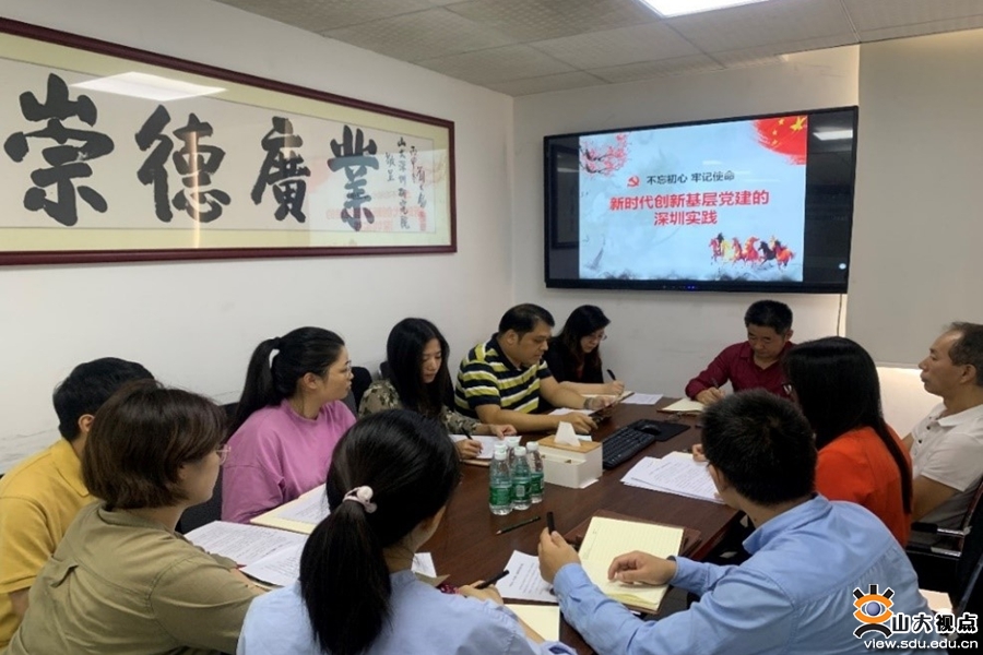 王明星表示,“不忘初心、牢记使命”是加强党的建设永恒的课题,是全体党员的终身课题。研究院全体员工要认真贯彻习近平总书记的重要指示,认真落实转型发展的各项工作,“守初心、担使命,找差距、抓落实”,在思想上、政治上、行动上同习近平同志为核心的党中央保持高度一致,始终忠诚于党,忠诚于人民。同时,研究院要时刻谨记山大人“为天下储人才,为国家图富强”的初心和使命,紧紧围绕学校“双一流”建设、服务山东、服务粤港澳大湾区建设中心,全力聚焦“人才培养,科研服务,校友联系、交流合作、社会服务和文化传播”的主责主业,带着山大人的梦想与期待,追求卓越,只争朝夕,奋力为学校“由大到强”历史性转变、为山东省新旧动能转换工程、为粤港澳大湾区发展战略、为深圳市加快建设中国特色社会主义先示范区作出更大贡献,以优异的成绩向新中国成立70周年献礼。
