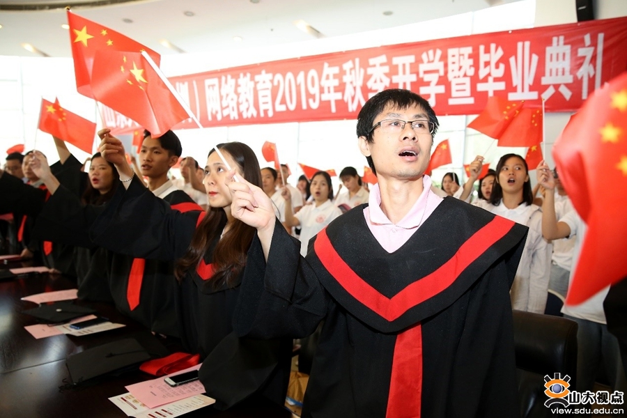 [本站讯]9月28日上午,山东大学(深圳)网络教育2019年秋季开学暨毕业典礼在深圳虚拟大学园举行。山东大学深圳研究院常务副院长、合作发展部副部长王明星,广东省执业药师注册中心行政秘书科科长姜兰,共青团深圳市委社区与权益部(市圆梦办)部长助理、深圳市青年社会组织联合会副秘书长陈忠宇,深圳书城培训中心副总经理邓科,深圳新美装饰建设集团有限公司董事长李德峰,创维集团有限公司党群工作部部长苏恒等合作单位代表出席了此次典礼。