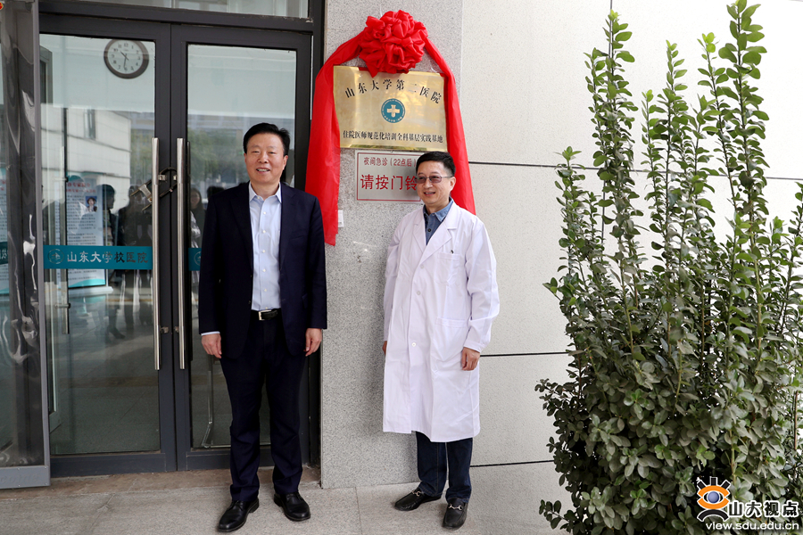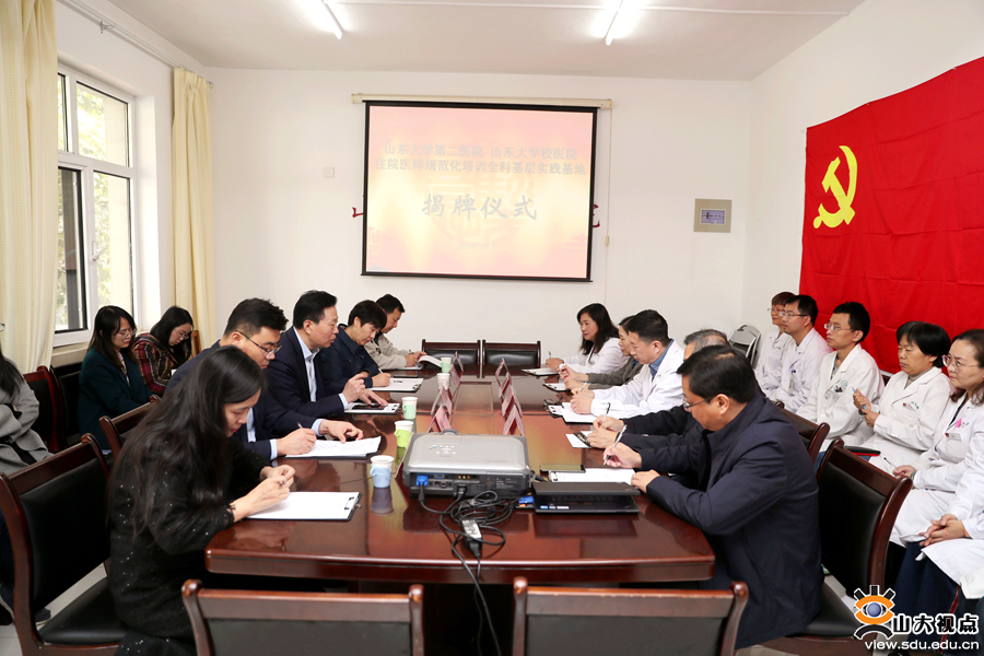 院长办公室、住院医师规范化培训部、全科医学科及山东大学校医院相关职能部门负责人、带教教师参加揭牌仪式。
