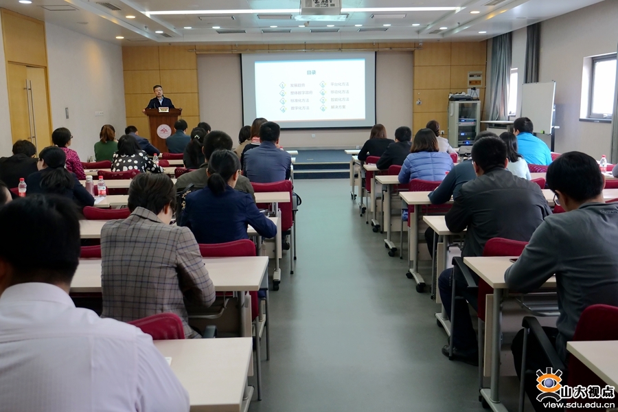 [本站讯]11月6日,山东大学第四期作风建设研修班第三场报告会在中心校区举行。山大地纬副总兼研究院院长、山东省泰山产业领军人才肖宗水教授为研修班作题为“整体数字政府建设与智慧政务服务”的报告。