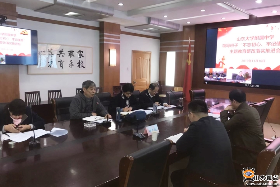 会上,李玉亮传达了山东大学领导班子“不忘初心、牢记使命”主题教育整改落实推进会的主要精神,大家明确了中央指导组和山东大学党委对下一步工作的要求。学校领导班子成员根据山东大学、附属中学“不忘初心、牢记使命”主题教育整改落实方案,对照主题教育问题清单,在对照检查、边查边改、立查立改的基础上,逐一对牵头负责的整改任务进行了总结梳理,从检视的问题、突出的现象、整改的措施、工作的进展成效和时间节点、下一步的工作方向等方面详细汇报了自己整改落实推进情况。对于遇到的复杂问题,大家群策群力,展开讨论,提出方案,明确了改进方向。