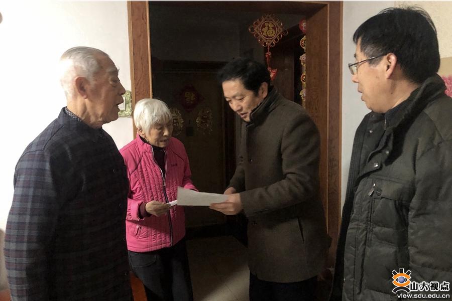 [本站讯]1月7日下午和8日上午,山东大学附属中学校长赵勇、党委书记李玉亮、常务副校长庄晓迎、副校长刘成军以及部分中层管理人员在新春即将到来之际,看望慰问了三个校区的离退休老领导,给他们送去新春的温暖和祝福,向他们致以崇高敬意,祝福他们身体健康、阖家幸福。