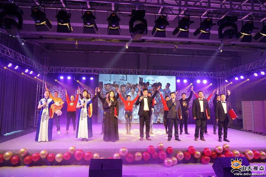 联欢会上,灯光璀璨,绚丽夺目,处处洋溢着新春到来之际的喜悦气氛,校区机关的干部职工们载歌载舞,以欢聚联欢的形式,展示风采,迎接新春,讴歌时代,展现出机关干部职工的良好风貌,显示出机关部处间的超强凝聚力。郭邦礼演唱了《我爱你中国》,用诚挚的歌声表达对伟大祖国的美好祝福以及对学校和校区机关广大干部职工的美好祝愿。资产与实验室管理处带来的《山大之歌+明天会更好+野狼迪斯科》活力十足,立刻点燃了现场的气氛。图书馆以温情甜美的《乡恋》表达出对祖国母亲深深的依恋。学生工作部和财务处分别带来的《你笑起来真好看》《财务纪念册》朗朗上口、活泼欢快。人事处的合唱《风吹麦浪》唯美浪漫,唤醒人们记忆深处最纯净美好的情愫。党工委(校长)办公室和国际事务办公室集体演唱了恢弘大气的《再一次出发》,传递出我们身处伟大时代的自信与自豪感。保卫处带来的歌曲《游击队之歌》生动地刻画出机智、灵活、勇敢、顽强的游击队群体英雄形象。国际创新转化学院演唱的串烧歌曲《相亲相爱》表达了同事之间和乐融融、相亲相守的美好情怀。基建处的《超幸福鞋垫》妙语连珠。研究生教育办公室经久不衰的《草原之夜》流淌出对生活的美好憧憬。条件保障处励志歌曲《相信我们会创造奇迹》将现场的火热气氛推向了高潮。本科生教育办公室的《沙漠骆驼+念诗之王+火红的萨日朗》赢得了现场阵阵掌声。此外,校友代表还带来了一首优美婉转的歌曲《我的深情为你守候》,浓情厚意流动在旋律之中。小品《期末考试》“笑果”十足。一首《母亲》道不尽对远在异乡的父母家人的思念之情。最后,联欢会在政工处慷慨激昂的诗朗诵《新年,你好》中画上句号。