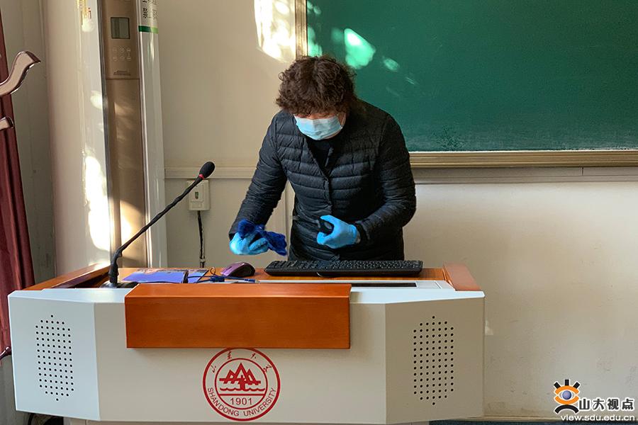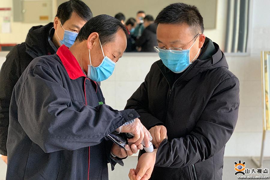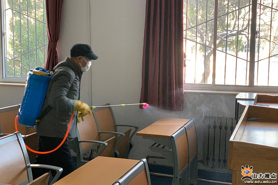 [本站讯]2月16日,后勤保障部部长殷录民在主持召开后勤保障部办公会上提出,要求各校区办按照《山东省高等学校2020年春季学期疫情防控工作指导手册》的要求和各自疫情防控工作方案进行模拟演练,相互观摩,及时发现问题并进一步细化、修正工作方案。2月17日上午,中心校区管理办公室首先开展教学楼消杀工作演练,其他各校区进行现场观摩。卫生健康中心主任赵增科,后勤保障部部长殷录民,副部长彭恒军、罗司军参加现场消杀演练。