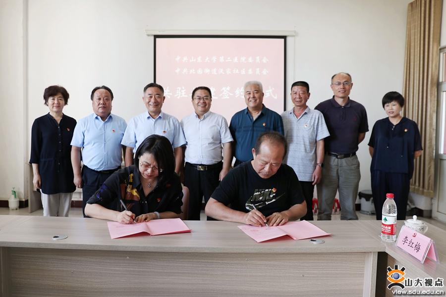 孔令华和巩向银代表双方签约。双方承诺将充分利用本单位的党建资源,共享党建工作信息,交流党建工作经验,共同组织开展党建活动,创建“资源共享、优势互补、携手共建、协调发展”的党建工作新格局。山大二院将根据社区需求,通过义诊、健康知识宣教等形式,组织党员参加社区志愿服务,力争为社区居民多办实事、办好事,实现“关系在单位,奉献双岗位”的党员活动新模式。
