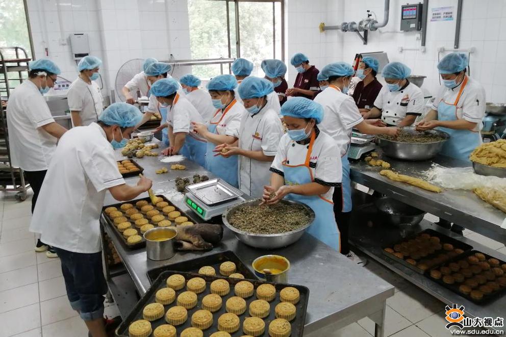 [本站讯]为庆祝国庆节、中秋节,学校免费为每一位在校学生定制发放山大月饼。中秋节前夕,学校学生食堂完成了加工制作60000多个月饼的工作任务。