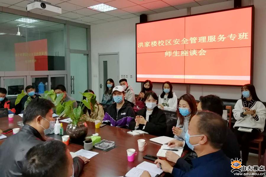 [本站讯]10月28日上午,洪家楼校区校园安全工作专班与校区内学生代表进行座谈,就校园安全和管理服务方面的事宜进行深入交流,为全面落实校区安全管理服务打好基础。校园专班相关领导和来自各部门专班成员,以及学生权益会、学生安管会、在洪楼校区上课学习生活的中心校区6个学院研究生代表参加会议。