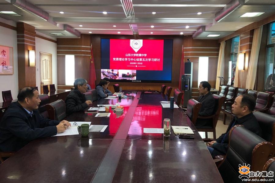 [本站讯]11月5日,附属中学党委理论学习中心组在洪家楼校区会议室举行第五次学习研讨。党委领导班子成员全体参加,附属中学党委书记李玉亮主持会议。