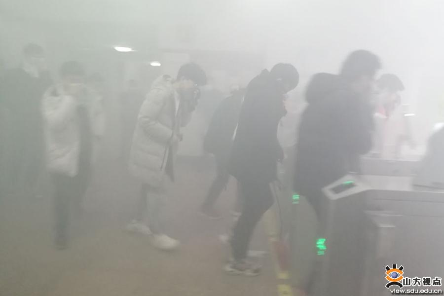 本次演习于12月3日在趵突泉校区、兴隆山校区分别拉开序幕。当执行指挥下达演习开始的命令后,工作人员便在公寓楼内模拟火灾现场进行了烟雾施放,拉起警报,并用广播喇叭播放疏散撤离的命令。现场浓烟密布,学生们按照疏散要求,在楼层疏散指导员的指挥下用湿毛巾折叠捂住口鼻,单列、靠右、低姿、快速有序进行疏散并集结到安全地带。演习结束后,校区指挥针对同学们的演习效果进行点评,进一步强调了紧急疏散逃生演习的重要意义和火灾险情逃生的正确做法,并指正演练过程中的不足之处。整个演习过程锤炼了同学们面对突然发生的自然灾害时临危不乱、处险不惊的良好心理素质,以及有效科学的逃生技能,使平时书面的安全防范意识更加真实具体,具有很强的指导和教育意义。