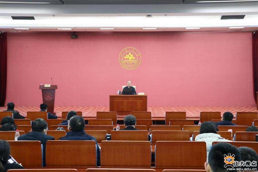 [本站讯]12月21日下午,山东大学举行一校三地学生工作系统“构建高校思想政治教育治理体系”专题报告会。教育部思想政治工作司原司长、中国教育战略发展研究会思想道德建设专委会理事长、中国高校思想教育研究会学术委员会主任、北京师范大学思想政治工作研究院院长冯刚教授受邀作专题辅导报告。报告会前,学校党委书记郭新立、党委副书记王君松就学校思想政治工作、“三全育人”综合改革等与冯刚进行了座谈交流。