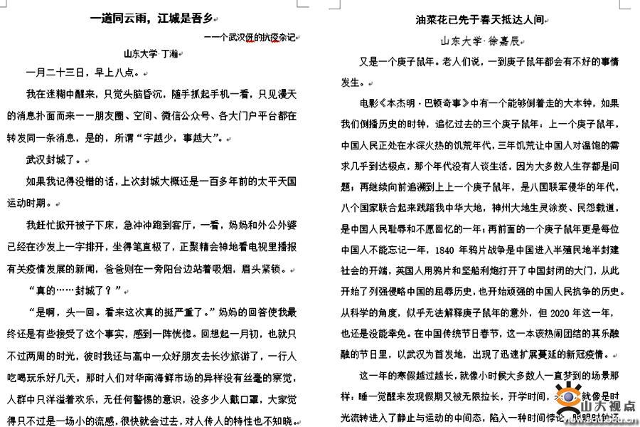 [本站讯]近日,山东省学校后勤协会开展第四届“公寓的故事”主题系列文化教育活动。山东大学推送的征文《一道同云雨,江城是吾乡》和《油菜花已先于春天抵达人间》分别获得一等奖、三等奖;文艺展演作品《朗诵:慧眼如炬耀华夏》获得一等奖;微电影《疫路通行》获得一等奖;校团委朱云龙、公寓中心张华云获得优秀指导教师;山东大学荣获“优秀组织奖”。