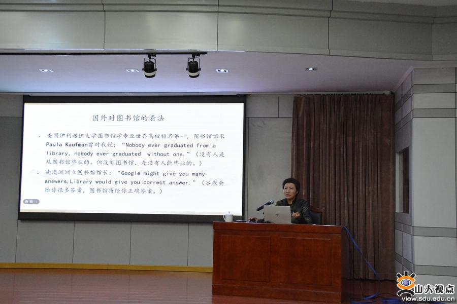 [本站讯]12月24日,山东省图书馆副馆长、山东省古籍保护中心副主任、二级研究馆员、山东大学兼职博导李勇慧在中心校区图书馆报告厅作“山东省图书馆特色专藏与古籍修复”的专题讲座。图书馆副馆长姜宝良主持并作总结发言。