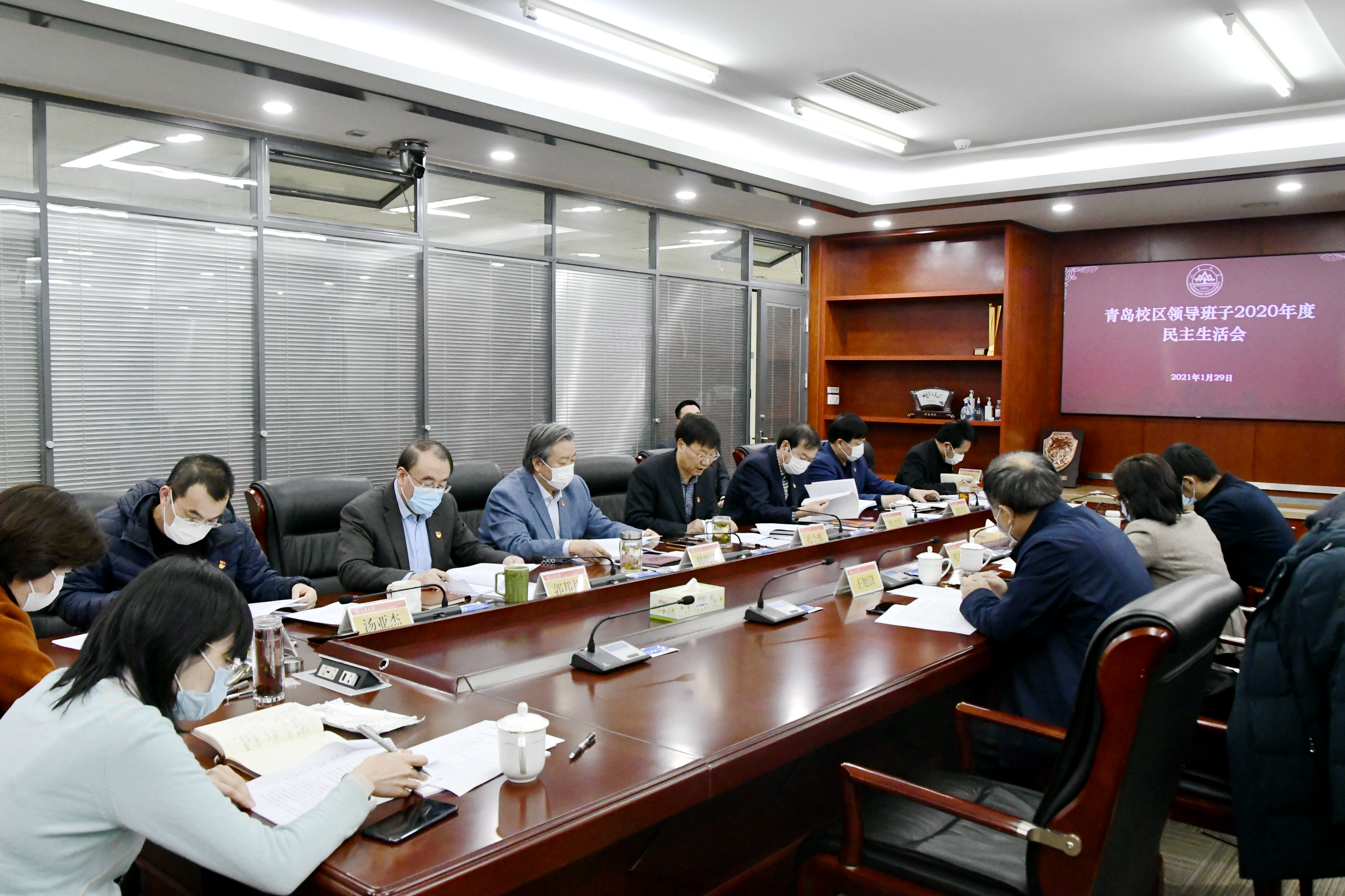 [本站讯]1月29日下午,青岛校区领导班子2020年度民主生活会召开。学校党委第十六督导组到会指导并作点评。校区党工委书记孔令栋主持会议并作总结讲话,校区领导班子成员参加会议。