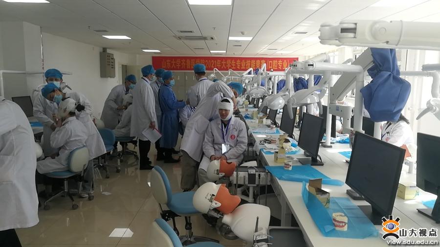 [本站讯]1月30日上午,山东大学2021年大学生医学技术技能大赛开完简短的开幕式后,各裁判员、15支代表队分别进入临床医学、预防医学、口腔医学、护理学各专业比赛点,做最后的准备工作。