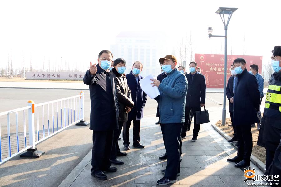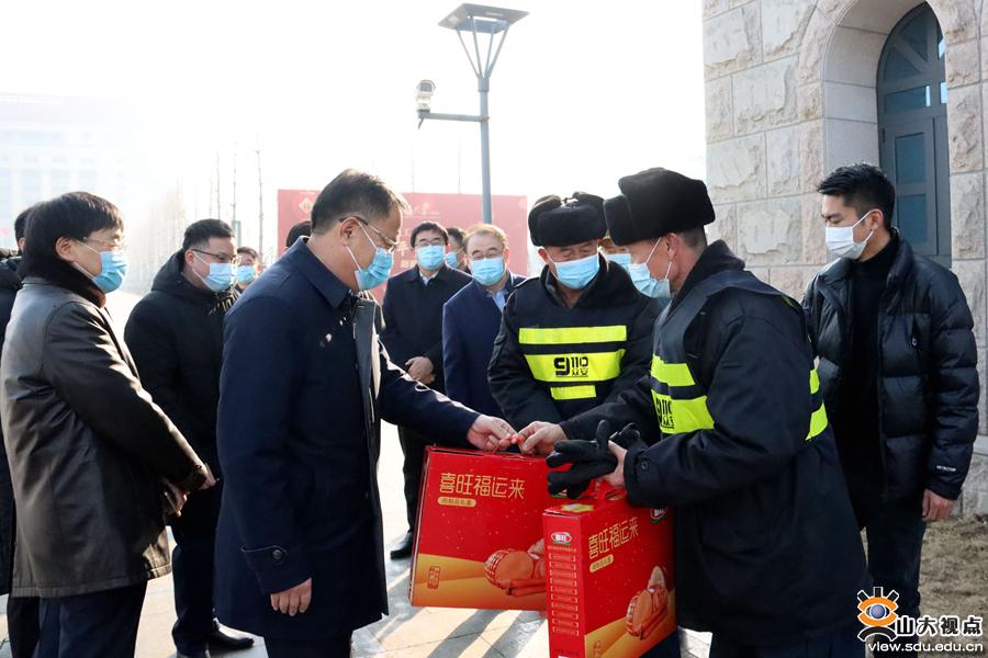 刘鹏照一行分别听取了校区有关疫情防控、安全管理、服务师生管理举措的汇报,先后前往校区西门岗亭、综合体育馆、学生公寓、曦园餐厅,与留校师生进行了亲切交谈,并为他们送上节日慰问品和新春祝福。刘鹏照强调,在严格做好疫情防控,确保留校师生安全的前提下,要多提供具有人性化关怀的服务举措,让留校师生感受到家的温暖。