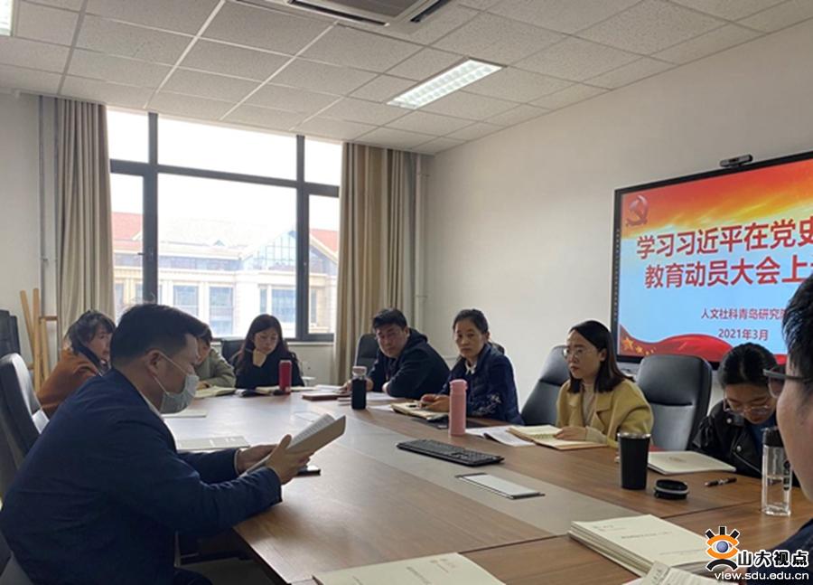 [本站讯]为了深入学习贯彻习近平总书记在党史学习教育动员大会上的重要讲话精神,3月18日下午,人文社科青岛研究院举行党史学习教育主题研讨会。研究院直属党支部书记张荣林出席会议,研究院直属党支部宣传委员李凤轩主持会议。