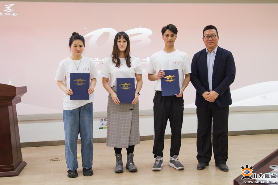 仪式上还为第一届协会理事会成员颁发了聘书,播放了来自香港中联办新界工作部、澳门特区政府驻北京办事处、香港特区政府驻山东办事处、山东省鲁台港澳交流服务中心、济南市政府台港澳事务办公室、香港山东青年会、鲁澳青年会、济南市台湾同胞投资企业协会等校外单位及北京大学、南京大学、武汉大学、四川大学、暨南大学等兄弟院校港澳台学生社团组织发来的祝贺视频及贺函。