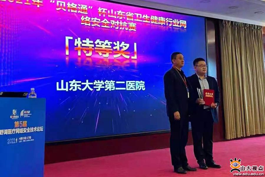 [本站讯]4月15日,在2021年山东省卫生健康行业网络安全技能对抗赛上,山东大学第二医院战队获得全省第一名、大赛特等奖的好成绩。