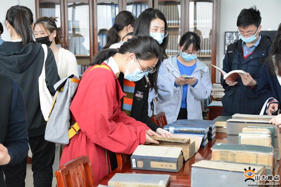 本次课程一改传统教学模式,由专业课老师和图书馆馆员一起作现场讲解与指导,学生们可以近距离接触到古籍文献,对课程知识有更加直观的了解。