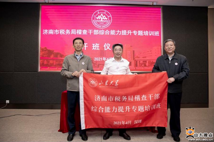 [本站讯]为适应新时代税务稽查现代化建设需要,提升税务稽查部门税务干部的业务能力和专业技能,4月18日上午,由山东大学深圳研究院承办的济南市税务局稽查局干部综合能力提升专题培训班开班,来自济南市税务局稽查局80余位干部参加培训。济南市税务局稽查局一级调研员周泊、山东大学深圳研究院常务副院长王明星出席开班仪式并致辞。