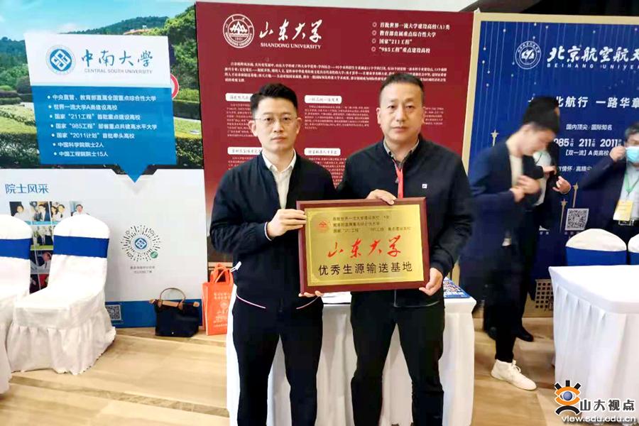 会议期间,韩勃还代表山东大学为湖北省武昌实验中学、湖北省利川市第一中学两所重点中学授予了“山东大学优秀生源输送基地”匾牌,并签署了合作协议。