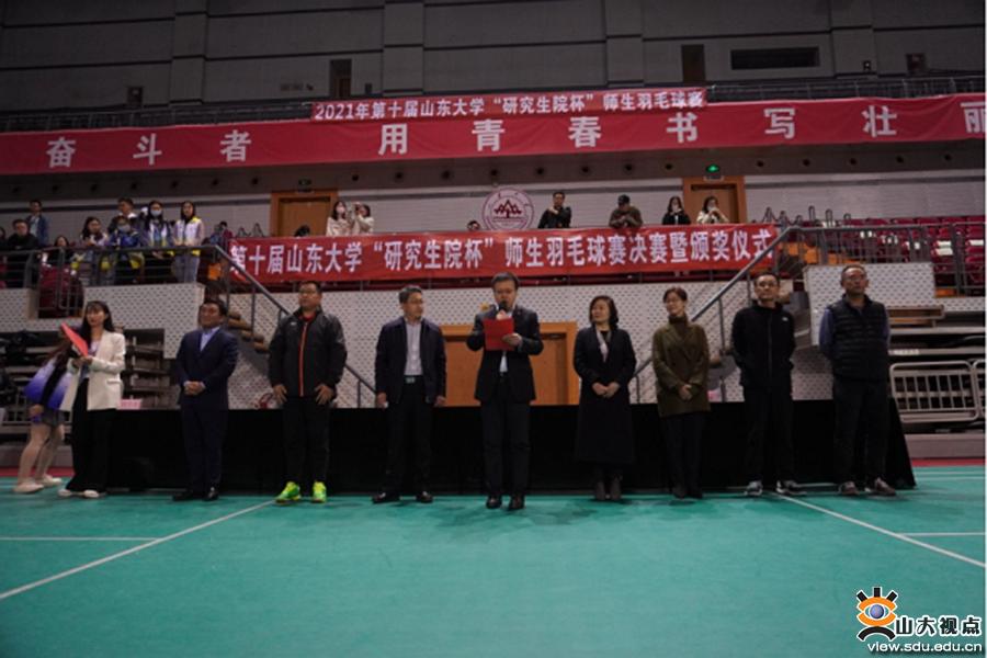 [本站讯]近日,山东大学第十届“研究生院杯”师生羽毛球赛在中心校区举行。山东大学党委副书记王君松,研究生院常务副院长、党委研究生工作部部长刘国亮,研究生院副院长、党委研究生工作部副部长高弟出席闭幕式暨颁奖仪式。