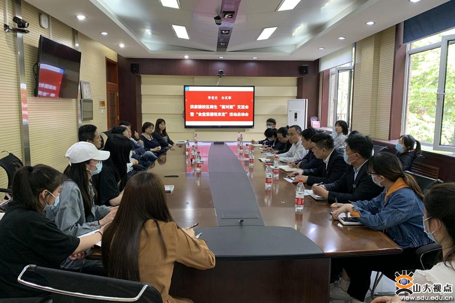 [本站讯]5月8日下午,后勤保障部饮食管理服务中心与洪家楼校区师生见面会暨“食堂菜谱我来定”活动启动会在外国语学院举行,校区师生代表、校区权小益及饮食中心相关负责人参加,饮食中心主任赵龙主持会议。