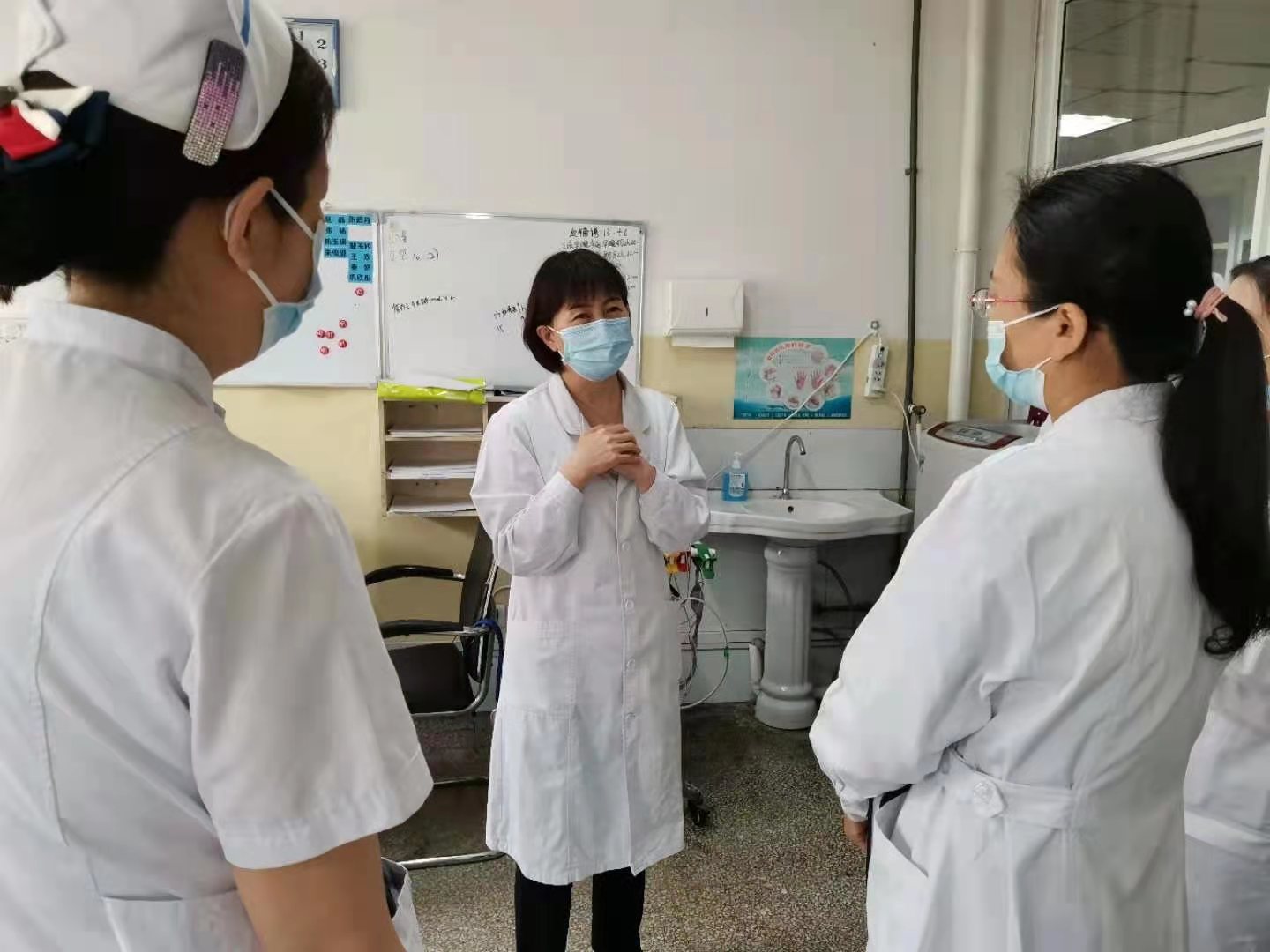 泌尿外科护士长叶国美和急诊医学中心护士长王兴蕾深入临床科室,查看危重病人、基础护理质量和病房环境,就护理专业重点知识、注意事项及护理特色工作传授工作经验,对县医院护理部及相关科室护理人员进行了详细指导。