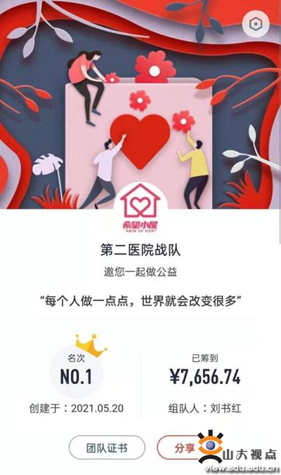 截止目前,全校共募集资金2万余元,组建“战队”413个。未来,山东大学将继续坚持精细化原则,做好各项资源保障,持续推动希望小屋儿童关爱项目走深走细走实,多方面助力“希望小屋”落地生根。同时,充分发挥“希望小屋”项目思想引领作用,让“希望小屋”项目成为推进社会主义核心价值观教育的重要抓手,激活项目内生育人理念,引领广大青年积极行动,在建党百年和立校百廿的历史交汇点,贡献青春力量、山大力量。