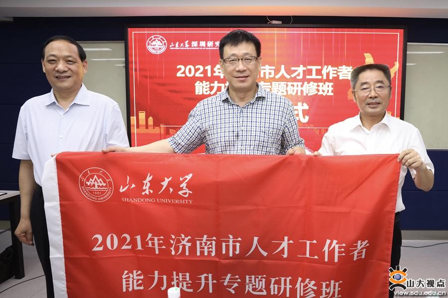 [本站讯]为适应新时代人才工作发展需要,增强人才干部学习能力、政治素质、改革创新本领和专业水平,促进产才融合,推动全市人才工作高质量发展,5月24日上午,由济南市委组织部主办,山东大学深圳研究院承办的2021年济南市人才工作者能力提升专题研修班开班,70余名来自济南市各机关单位人才工作干部参加培训。济南市委组织部副部长、老干部局局长苏本宽、山东大学深圳研究院常务副院长王明星、副院长傅杰出席开班仪式。