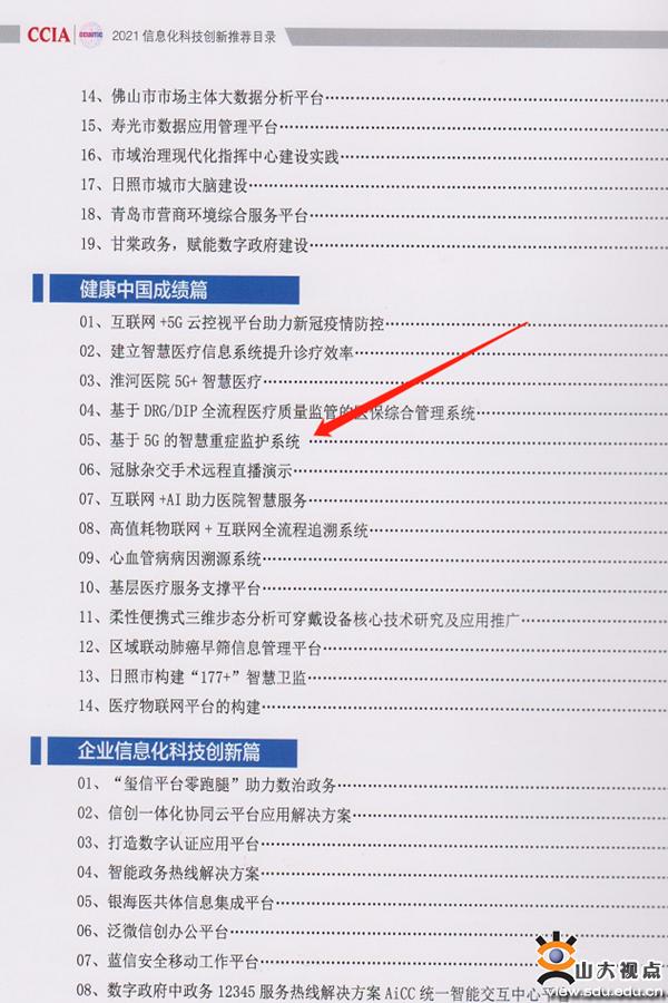 [本站讯]近日,由中国通信工业协会主办的2021信息化科技创新大会在北京举行,大会公布了《2021信息化科技创新推荐目录》。山东大学第二医院信息化创新成果“基于5G的智慧重症监护系统”入选2021信息化科技创新推荐目录。