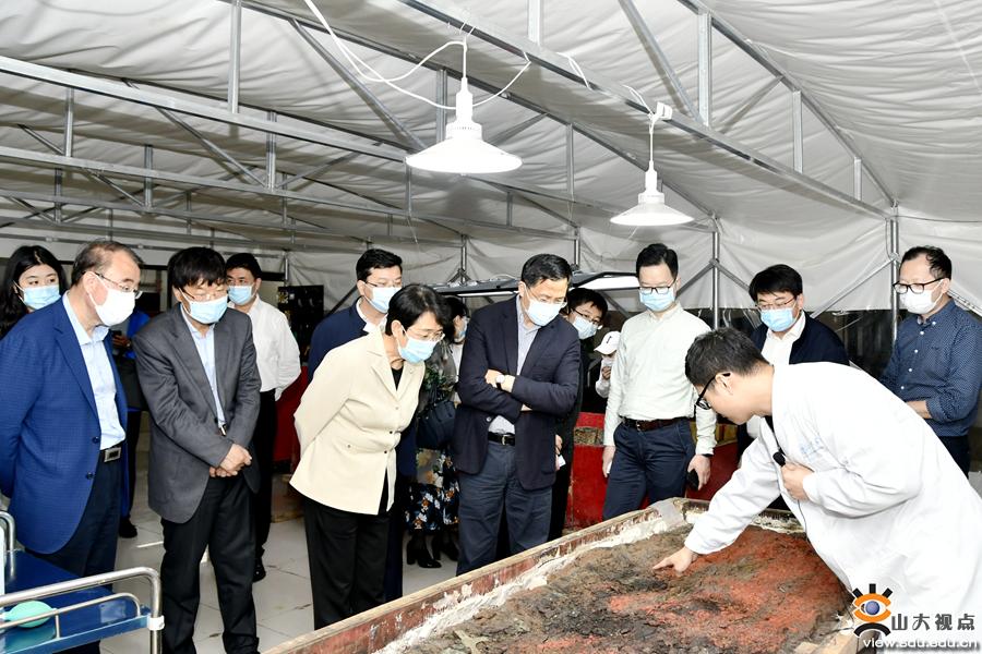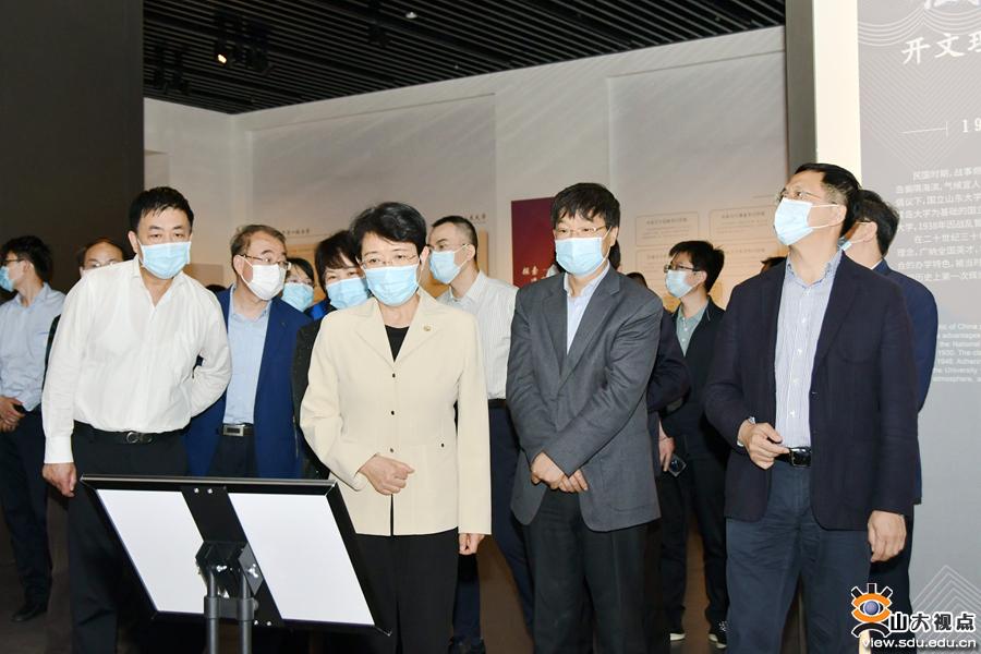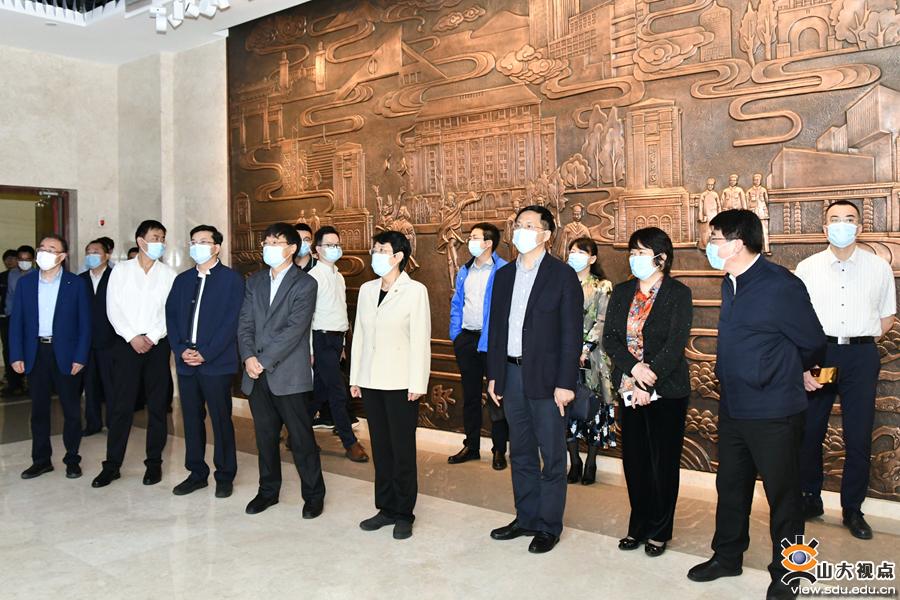 调研中,隋军一行来到青岛校区博物馆,依次参观了“百年学府——山东大学校史展”“文韵齐鲁——山东大学文物考古成果展”和室内考古实验室。参观过程中,孔令栋详细介绍了山东大学的历史沿革及办学成就,重点介绍了山东大学考古学科及青岛校区博物馆的建设发展情况。隋军高度肯定了山东大学的发展成就,她表示,山东大学作为一所百年老校,秉承“为天下储人才,为国家图富强”的办学宗旨,文化根脉深厚,学科基础扎实,名家大师云集,在中国高等教育的发展进程中作出了重要贡献。希望站在百廿校庆历史节点上的山东大学,在青岛校区“新引擎”的推动下,凝心聚力、守正创新,在世界一流大学建设的进程中取得更大成效。