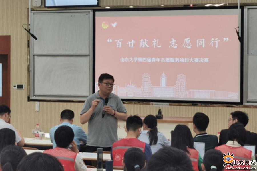 [本站讯]6月5日,“百廿献礼,志愿同行”山东大学第四届青年志愿服务项目大赛决赛在中心校区举行。本次大赛评选出金奖项目6个,银奖项目11个,铜奖项目9个。团省委志愿者行动指导中心主任刘北雪、团济南市委志愿者行动指导中心副主任刘江、山东大学哲学与社会发展学院社会学系李淼教授等参与评审。
