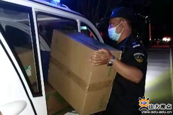 趵突泉校区校卫队夜间也在帮忙搬运行李