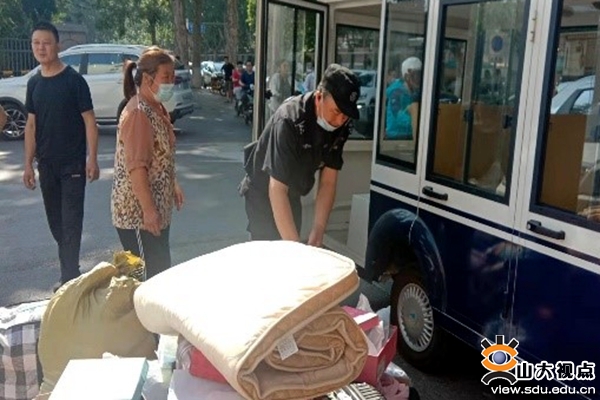 千佛山校区校卫队帮毕业生搬运大件行李