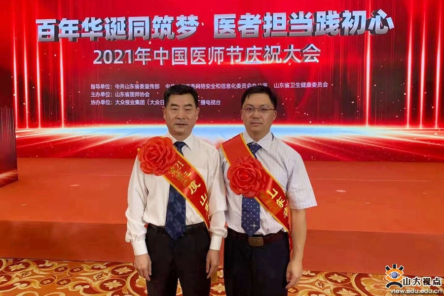 [本站讯]8月17日下午,山东省2021年中国医师节“百年华诞同筑梦 医者担当践初心”主题庆祝大会在济南召开。山东大学第二医院儿外科主任医师陈雨历获评第三届“医师楷模”、重症医学科主任马承恩获评2021年“山东好医生”、内分泌科主任陈诗鸿获评2021年“山东省优秀科主任”,胃肠外一科副主任医师周勇获评2021年“山东省优秀医师”。