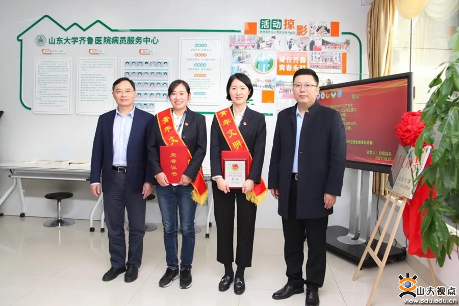 [本站讯]10月21日,齐鲁医院团委在门诊部病员服务中心会议室举行了山东大学青年文明号授牌仪式,山东大学团委书记姜炳刚、齐鲁医院党委副书记苏华、门诊部主任董来东、门诊部副主任王超出席仪式,团委副书记姜小峰主持仪式。