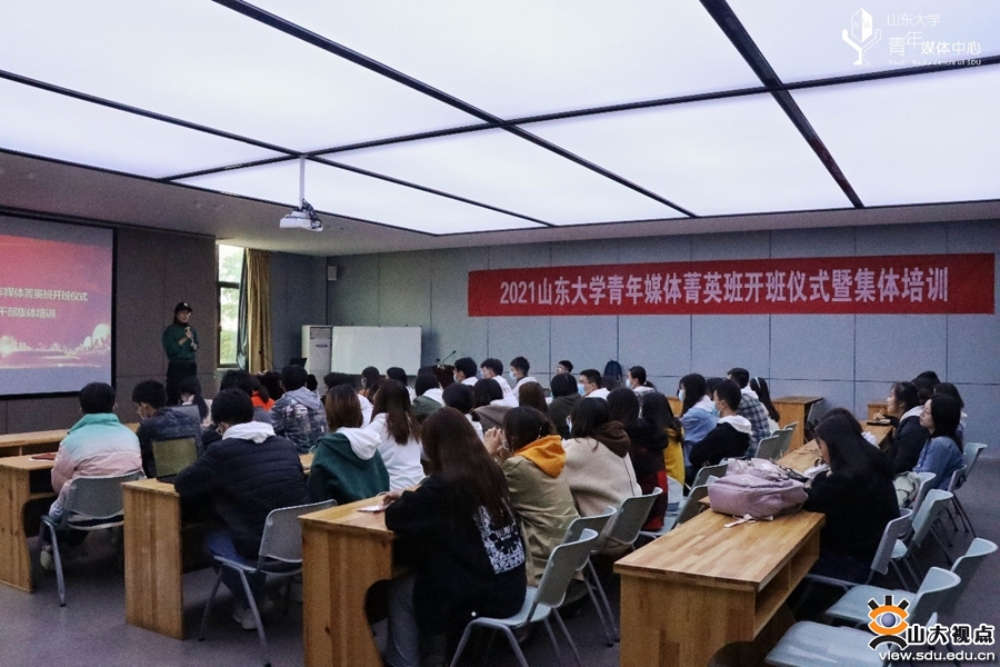 2021年山东大学青年媒体菁英班开班仪式暨兼职团干部集体培训通过精彩有趣的集体培训,增强了青年媒体菁英班与兼职团干部队伍凝聚力与责任感,展现了山大青年昂扬向上的精神面貌。菁英班作为“青马工程龙头班级”之一,力求通过理论与实践相结合的课程形式,有效提升青年媒体人的宣传素养和工作能力。课程未来将继续引领学员们明确宣传导向、练就过硬本领、淬炼创新精神,充分发挥马克思主义思想对青年的引领作用,构建校园宣传新格局。
