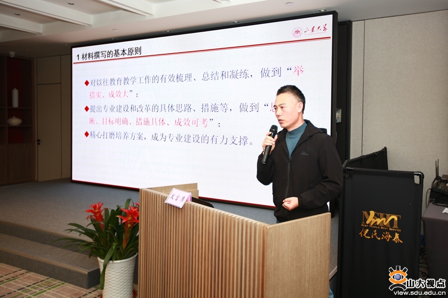 材料科学与工程学院副院长管延锦从材料撰写的基本原则、注意事项与建议、下一步专业建设的思考三方面分享了国家级一流本科专业建设点采集表的填写经验。