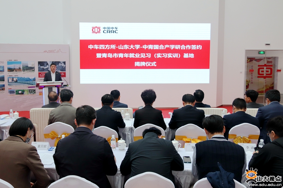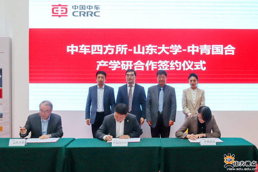 仪式上,中车四方所、山东大学、中青国合三方代表共同签署产学研合作协议。
