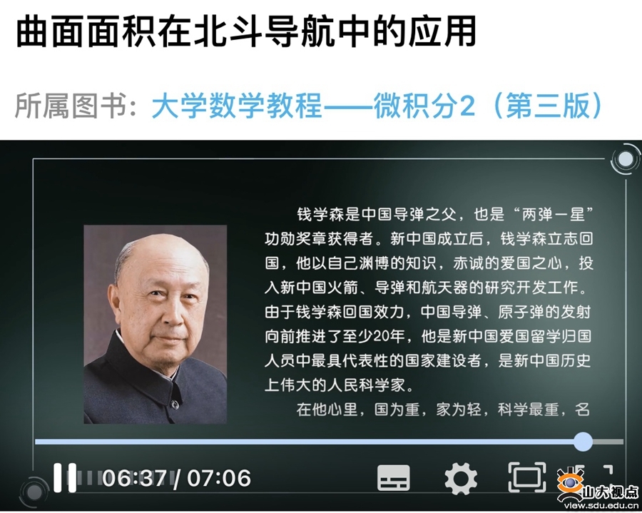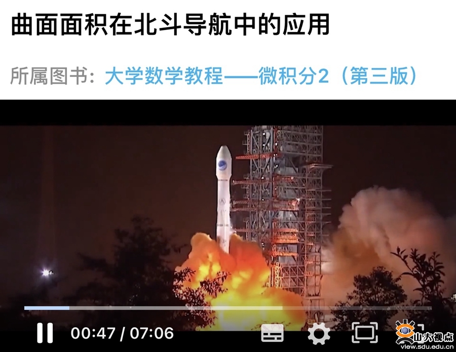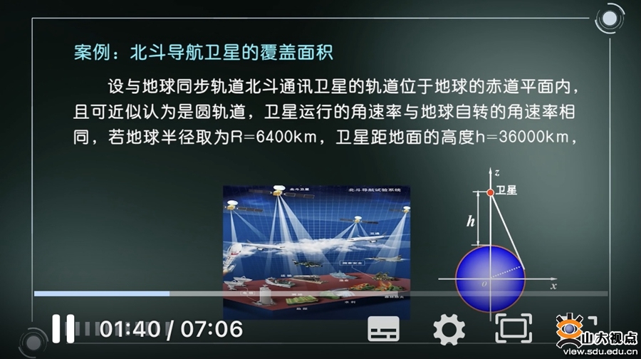 与时俱进,将科技发展前沿成果融入教材。编者站在学术前沿挖掘知识点本身与科技发展前沿成果的结合点,随时更新授课视频案例。如结合曲面面积公式知识点,选择最新发射的第55颗北斗导航通讯卫星科技前沿问题作为案例,利用本节知识解决北斗导航卫星覆盖面积问题,体现最新科技成果,学生扫描二维码即可观看授课案例。