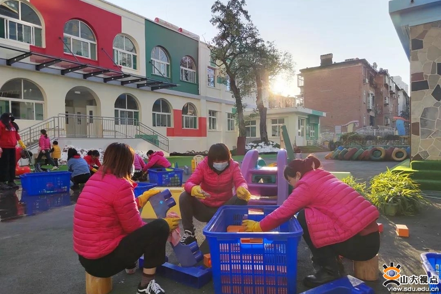 山西队队员黄宵雨表示,今天看着幼儿园孩子们的橱柜、玩具焕然一新,很有成就感,尤其是孩子们排队的时候叫着姐姐,热情地和我打招呼,心里特别开心,小朋友们特别可爱。河南队队员高萁谈到,今天开展了一些体育设施摆放工作,在劳动中进一步体会教师这份职业的责任与担当,以劳增智,以劳强体,劳动是人一辈子的教育。山西队队员柳昊表示,今天参与了党团共建与劳动教育,希望今后与研支团同学一起不断学习进步,早日成为一名合格的支教老师,展现山大学子风采。新疆队队员叶文馨谈到,这次和山大三幼的交流项目开展了一系列有趣、有意义的活动,让我受益良多,在劳动实践中,我深深体会到老师的不易,同时也感受到青春的价值、志愿服务的底色。